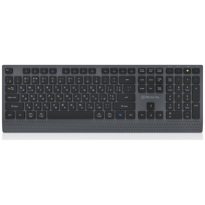 REAL-EL RK-715W — це стильна бездротова клавіатура для тих, хто цінує комфорт, швидкість і свободу від дротів.
