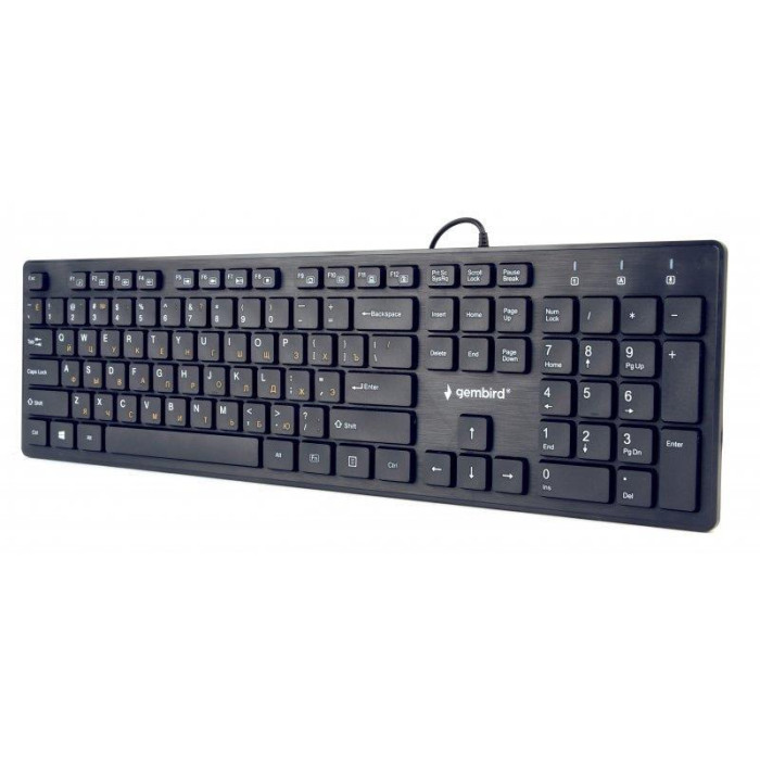 Gembird KB-MCH-03-UA — дротова клавіатура з низькопрофільним дизайном. Клавіатура обладнана цифровим блоком для зручності введення, що забезпечує легку та комфортну роботу, пов'язану з набором чисел. Виріб має розділені клавіші для максимальної зручності в користуванні та зменшення кількості помилок під час набору тексту.