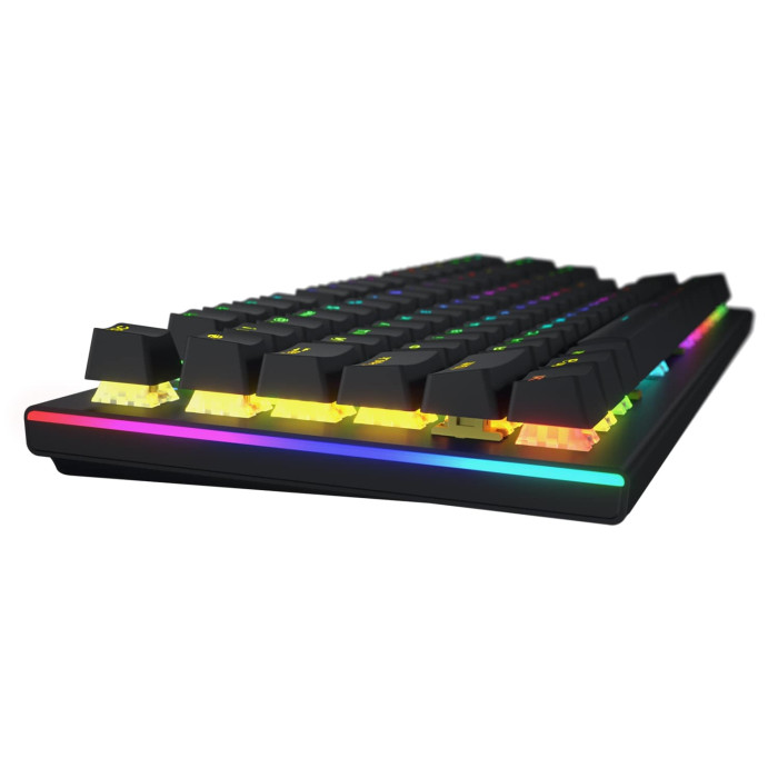 Компактна клавіатура формату TKL з алюмінієвою пластиною та надійними і швидкими лінійними перемикачами HATOR Aurum Orange забезпечить високу продуктивність та довговічність експлуатаціЇ. А налаштовуване RGB підсвічування кожної клавіші і подвійна система шумозаглушення відповідають за візуальний та акустичний комфорт під час роботи з клавіатурою.