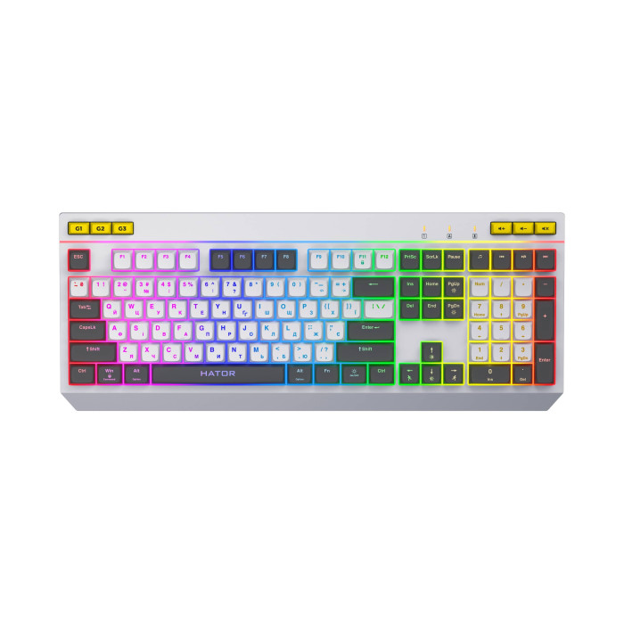 Повнорозмірна мембранна клавіатура HATOR Icefall – ідеальний вибір для тих, хто цінує зручність та високу продуктивність. Завдяки тихій роботі, широкому набору функцій, продуманому дизайну та насиченому RGB-підсвічуванню, ця клавіатура підходить для різноманітних сценарії використання.