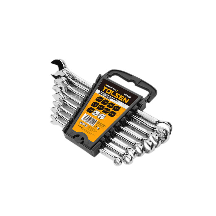 Набір двосторонніх гайкових ключів Tolsen Профі складається з 8 ключів дюймових розмірів: 5/16″, 3/8″, 7/16″, 1/2″, 9/16″, 5/8″, 11/16″, 3/4″. Виготовлені з міцної хромованадієвої сталі (CrV) із хромованим дзеркальним покриттям, вони забезпечують довговічність, корозійну стійкість та зручність у роботі.