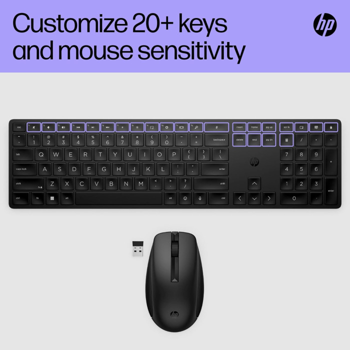 HP 650 Wireless — це стильний та ергономічний комплект клавіатури та миші, що забезпечує комфортну та ефективну роботу. Клавіатура з повнорозмірною тризонною розкладкою має низькопрофільні клавіші з ходом 2,0 мм, що забезпечують точне та приємне натискання. Миша з багатоповерхневою сенсорною технологією дозволяє працювати на різних поверхнях без втрати точності.