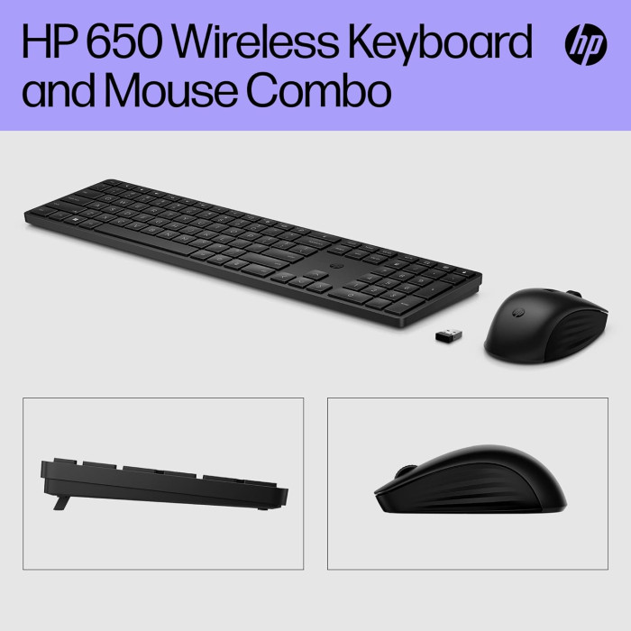 HP 650 Wireless — це стильний та ергономічний комплект клавіатури та миші, що забезпечує комфортну та ефективну роботу. Клавіатура з повнорозмірною тризонною розкладкою має низькопрофільні клавіші з ходом 2,0 мм, що забе... Читати далі...