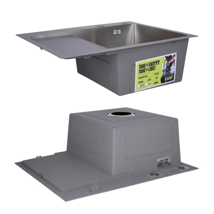 Комплект Lidz Handmade H6350L (Brushed) створений для шанувальників функціональності: інтегрована мийка з лівим крилом, дозатор для мийного засобу та кошик Lidz K01G - все, що потрібно для комфорту.
