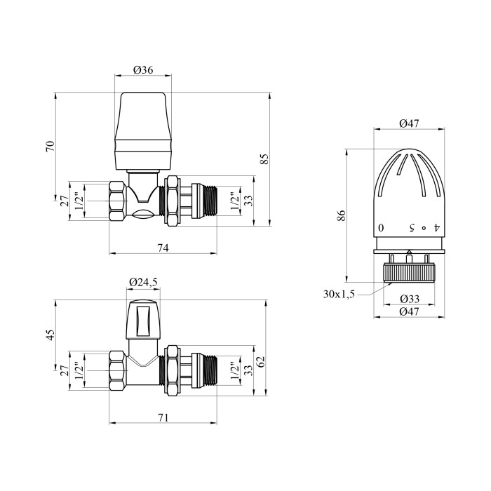 Корпус кранів виготовлений з латуні з нікельованим покриттям, яке захищає від корозії та продовжує термін служби. Термоголовка дозволяє точно регулювати інтенсивність нагріву, підтримуючи задану температуру і сприяючи економії енергоресурсів.