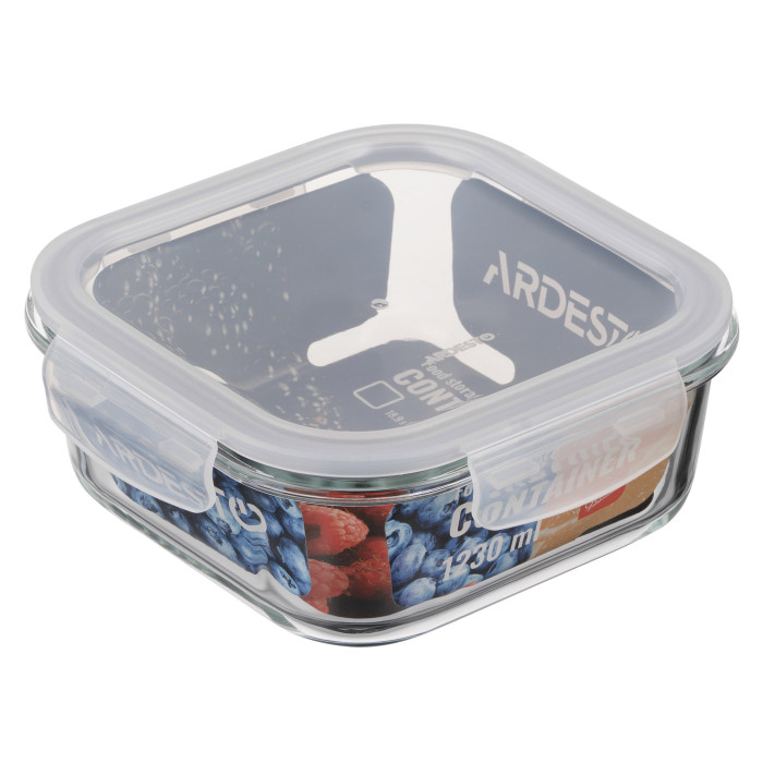 Контейнер для зберігання харчових продуктів ARDESTO Gemini 1.23л, боросилікатне скло, пластик, квадратний, прозорий