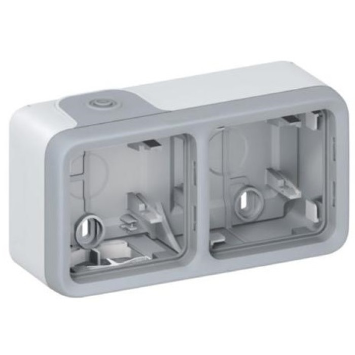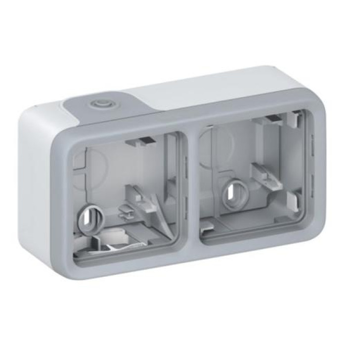 Коробка 2 пости для накладного монтажу Legrand Plexo, горизонтальна, в комплекті сальники, ІР55, ІК07, сірий