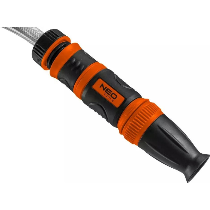 Автоматичне намотування шланга 15-891 NEO - це повний комплект не тільки для поливу саду. До 20 м шланга з додатковими 2 м сполучного шланга. Набір укомплектований автоматичним пристроєм, що втягує, і зрошувачем. Крім того, він має штуцер та муфти. Зручна система автоматичного втягування шланга має гальмівний механізм, що запобігає неконтрольованому пошкодженню наконечника. Шланг також можна зафіксувати на будь-якій довжині, що запобігає складкам і перегинам шланга завдяки системі напрямних, захищаючи його від пошкоджень.