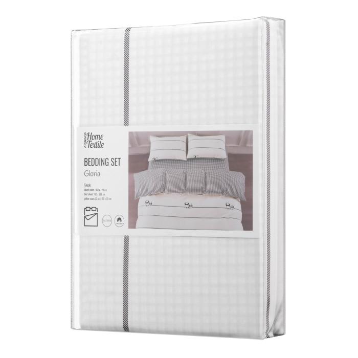 Комплект постільної білизни Gloria – це поєднання витонченого дизайну й безкомпромісної якості. Вироблена зі 100 % бавовняного сатину щільністю 200 ТС, постіль подарує винятковий комфорт і затишок. М’яка тканина ніжно пестить шкіру, забезпечуючи її дихання і створюючи відчуття свіжості та легкості. Дизайн із милим принтом додає спальному місцю особливого шарму.