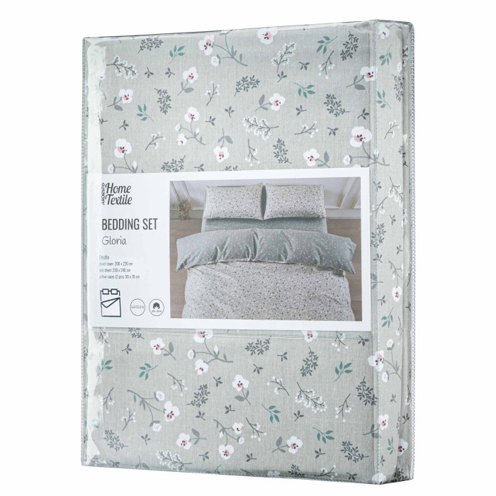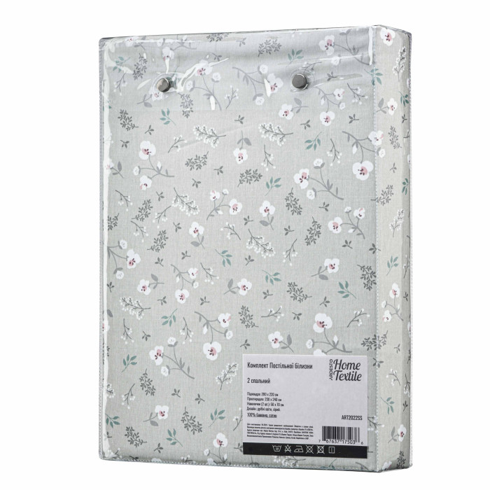 КПБ 2,0сп ARDESTO Gloria, підковдра 200х220см, простирадло 230х240см, наволочки (2) 50х70см, 100% бавовна, сатин, дрібні квіти, сірий