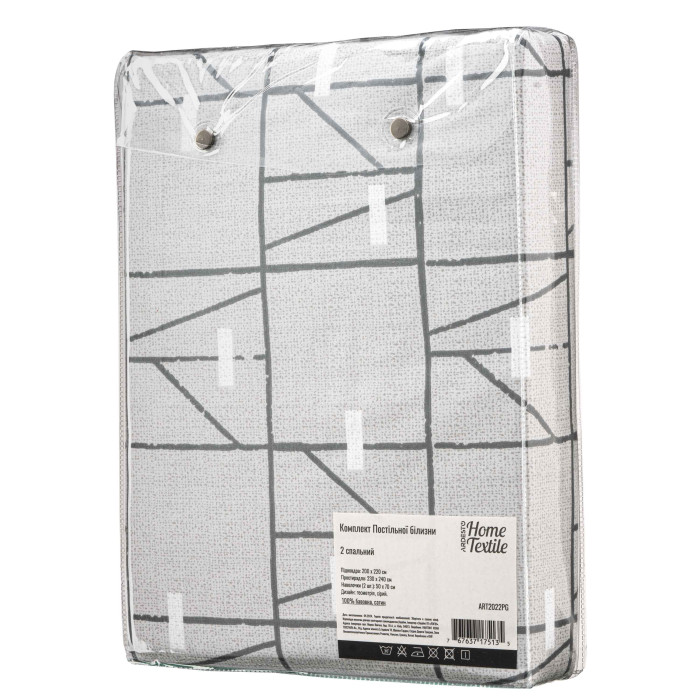 КПБ 2,0сп ARDESTO Gloria, підковдра 200х220см, простирадло 230х240см, наволочки (2) 50х70см, 100% бавовна, сатин, геометрія, сірий