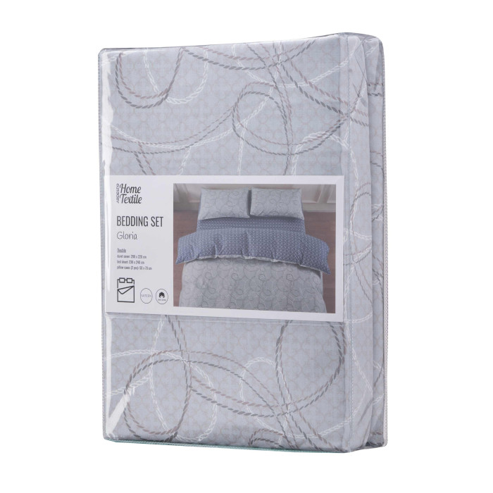 Комплект постільної білизни Gloria – це поєднання витонченого дизайну й безкомпромісної якості. Вироблена зі 100 % бавовняного сатину щільністю 200 ТС, постіль подарує винятковий комфорт і затишок. М’яка тканина ніжно пестить шкіру, забезпечуючи її дихання і створюючи відчуття свіжості та легкості. Дизайн із геометричними візерунками додає спальному місцю сучасної елегантності та гармонії, створюючи атмосферу спокою.