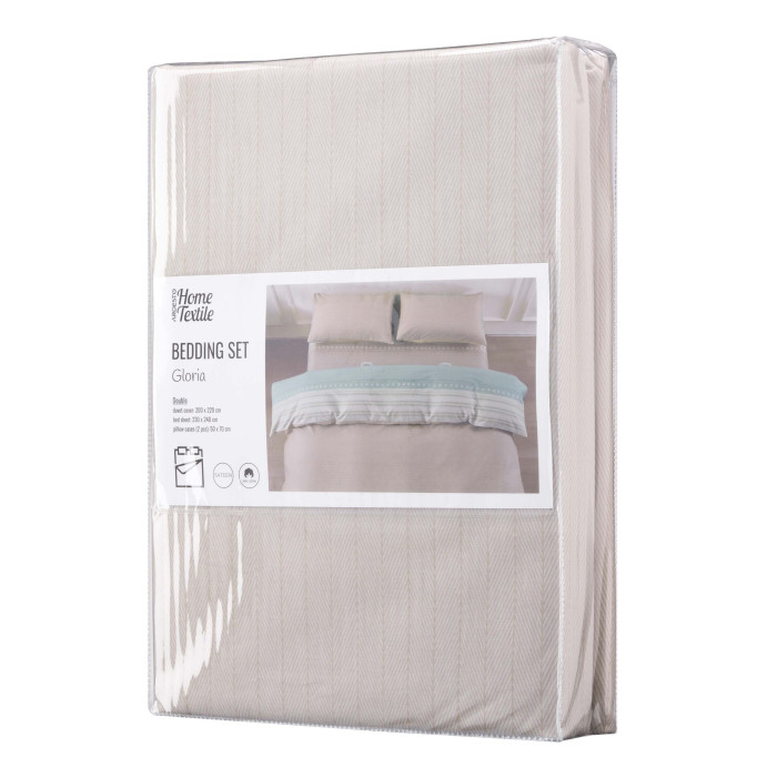 Комплект постільної білизни Gloria – це поєднання витонченого дизайну й безкомпромісної якості. Вироблена зі 100 % бавовняного сатину щільністю 200 ТС, постіль подарує винятковий комфорт і затишок. М’яка тканина ніжно пестить шкіру, забезпечуючи її дихання і створюючи відчуття свіжості та легкості. Дизайн ніжного коричневого відтінку зі смужками додає спальному місцю елегантності та сучасного стилю.