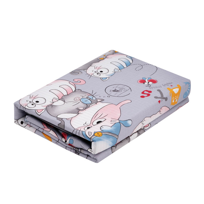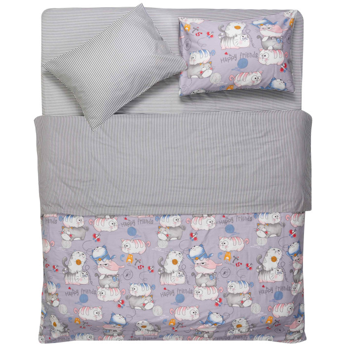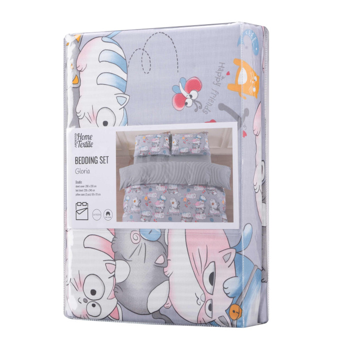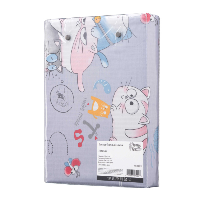 КПБ 2,0сп ARDESTO Gloria, підковдра 200х220см, простирадло 230х240см, наволочки (2) 50х70см, 100% бавовна, сатин, веселі котики, сірий