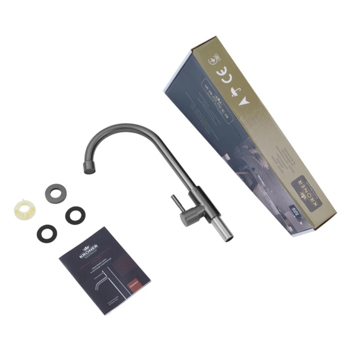 Цей кран від Kroner є практичним і естетично приємним вибором для вашої кухні, де функціональність і стиль поєднуються в ідеальному балансі.