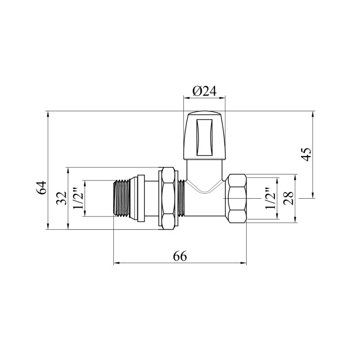 Кран вентильний радіаторний з системою антіпротечка STA 1/2" ВЗ під шестигранник, прямий, нікельований