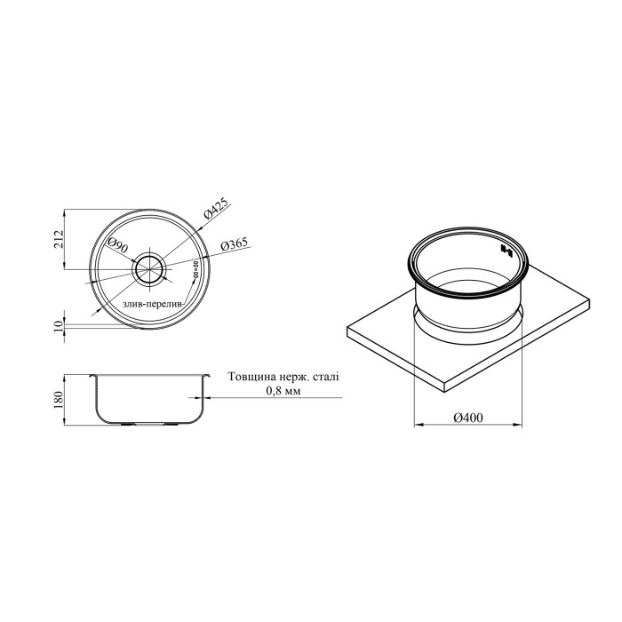 Основні характеристики цього миття включають габарити чаші в розмірі 365х365х180 мм, що забезпечує достатній простір для зручного миття посуду та овочів. Мийка виготовлена з міцної нержавіючої сталі SUS201 товщиною 0,8 мм, що гарантує довгий термін служби та стійкість до корозії та пошкоджень.