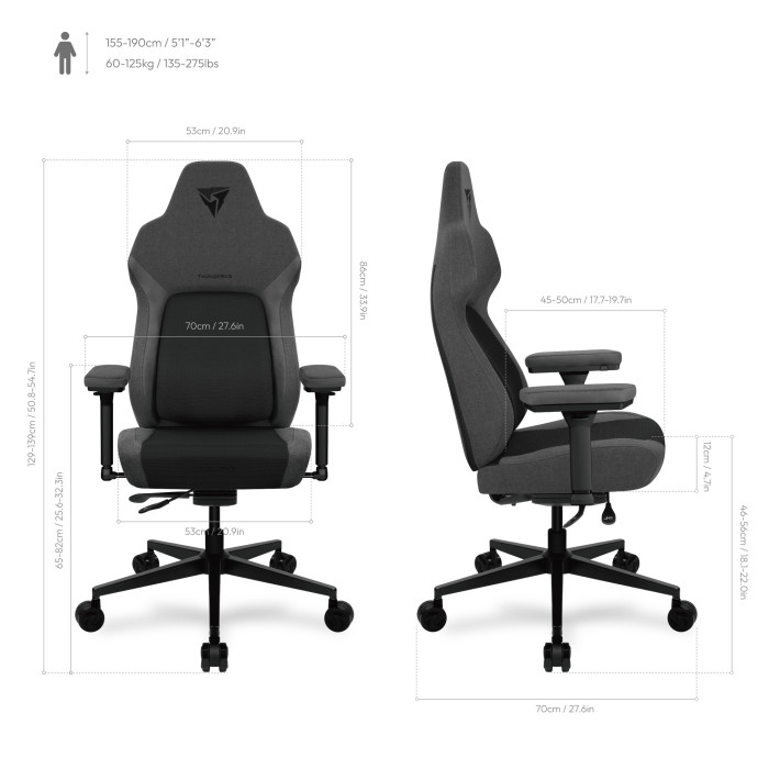 Завдяки технології CORE.RDY, єдиній у своєму роді поперековій опорі, яка самостійно підлаштовується під вашу поставу в усіх напрямках, TX3 Core забезпечує максимально ергономічне сидіння. Побудоване з багатофункціональним механізмом SYNC5 для 5-стороннього регулювання відповідно до вашого тіла та положення сидіння.