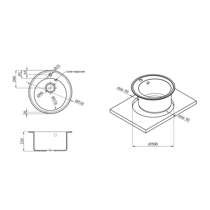 Мийка, сифон, злив-перелив, кошиковий вентиль, кріплення.