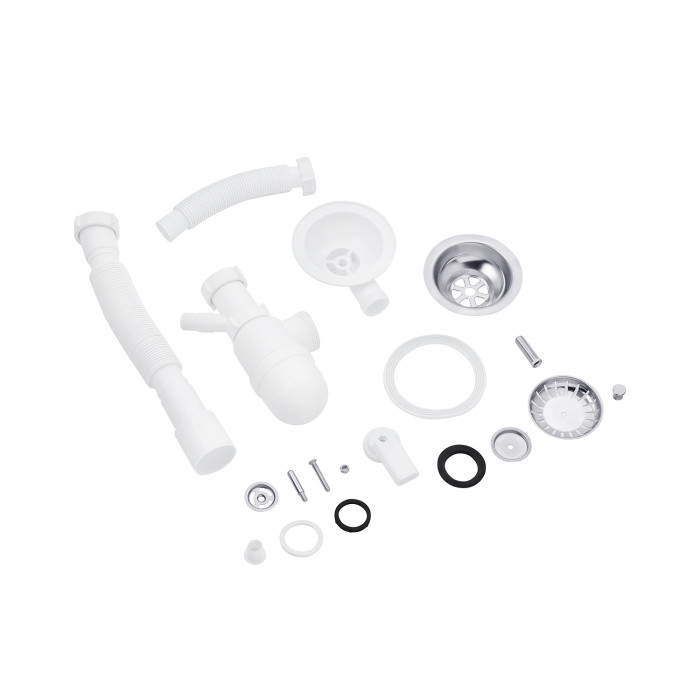 Мийка, сифон, злив-перелив, кошиковий вентиль, кріплення.