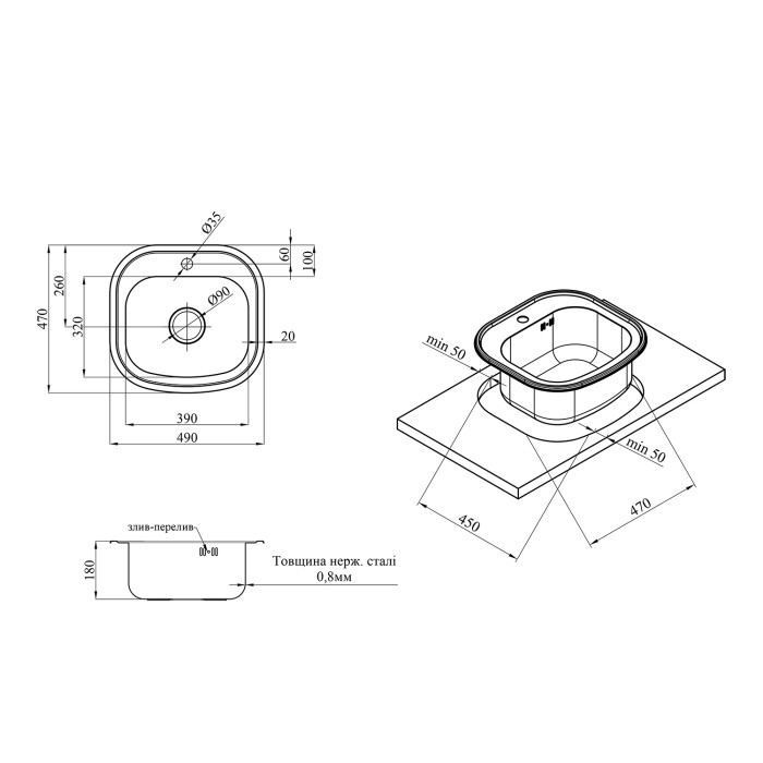 Кухонна мийка Kroner KRP Satin - 4749 (0.8 мм)
