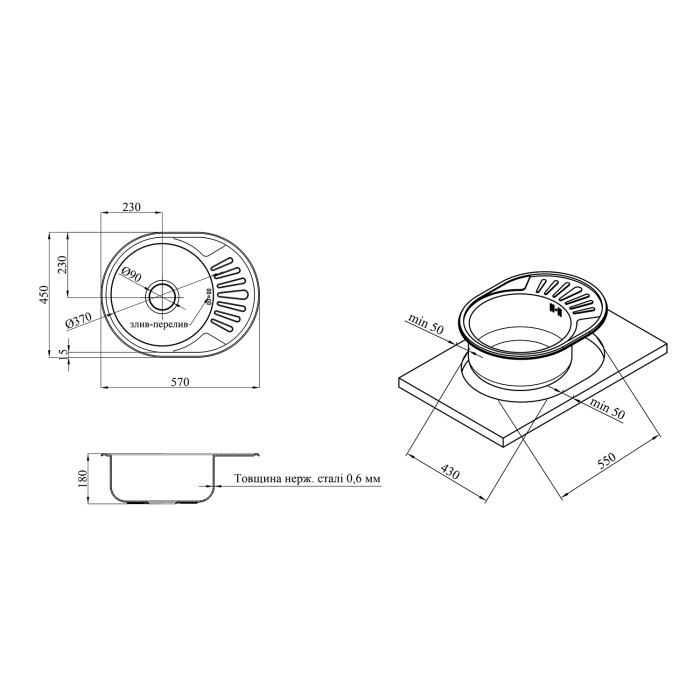 Кухонна мийка Kroner KRP Satin - 5745 (0,6 мм) - ідеальне рішення для сучасної кухні. Мийка виконана у вигляді овальної чаші з крилом для посуду, монтується врізним способом. Виготовлена з високоякісної нержавіючої сталі, що забезпечує довгий термін служби і легку очистку. Функціональна, надійна та естетично приваблива - мийка від Kroner стане незамінним помічником у приготуваннях та прикрасою вашої кухні.