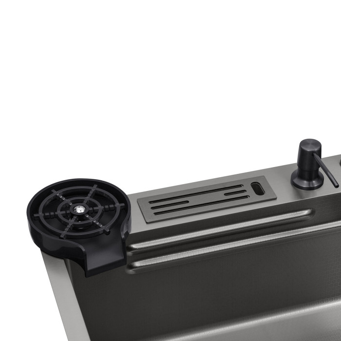 Мийка, змішувач, кран "Крапля", ополіскувач для склянок, обробна дошка, коландер, піддон, дозатор для миючого засобу, зливна арматура, сифон