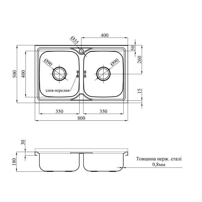 Діаметр зливу, мм