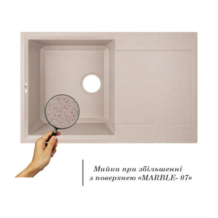 Кухонна мийка Lidz (MAR-07) з просторим крилом — це практичне рішення для зручної організації робочої зони на кухні. Врізна мийка зі штучного каменю відзначається високою міцністю, стійкістю до подряпин і температурних в... Читати далі...