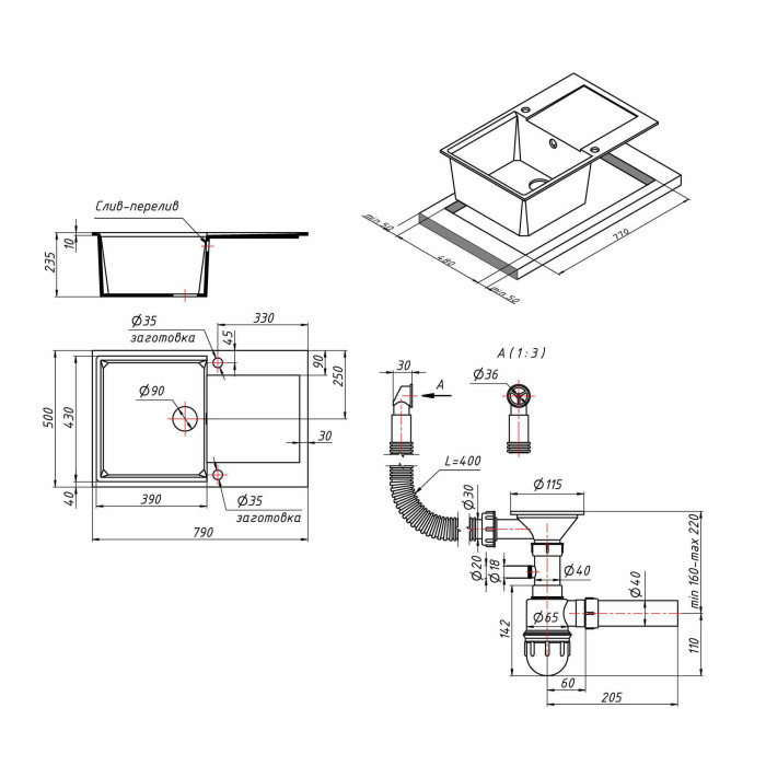 Нами докладено всіх зусиль для подання точної та правдивої інформації в описі виробу. Тип і основні розміри відповідають зазначеним на кресленні, але, зважаючи на особливості виробництва та матеріалів, розміри можуть змінюватись в межах від -3 до -7 мм, тому виріз у стільниці необхідно робити виключно за наявності миття. Виробник залишає за собою право вносити зміни до конструкції виробів та комплектації, які не погіршують якість, без попереднього повідомлення. до -7 мм, тому виріз у стільниці н