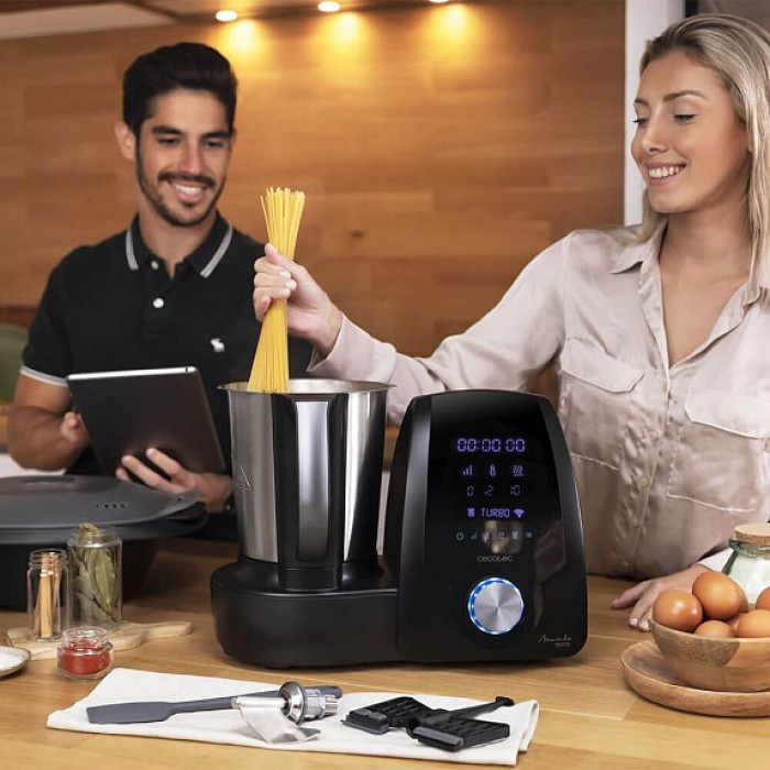 Mambo революціонізує кухню за допомогою свого інтуїтивно зрозумілого додатка Mambo. Дуже зручний призначений для користувача інтерфейс для взаємодії з роботом в режимі реального часу. Легко керуйте всім зі свого смартфона: зберігайте рецепти, дотримуйтесь інструкцій, отримуйте push-повідомлення. Тепер будь-хто може стати відмінним кухарем. Крім того, він має вбудовані ваги для роботи з точними кількостями і нічого не залишає на волю випадку, а також високоякісний ковш з нержавіючої сталі великої ємності, який можна мити в посудомийній машині.