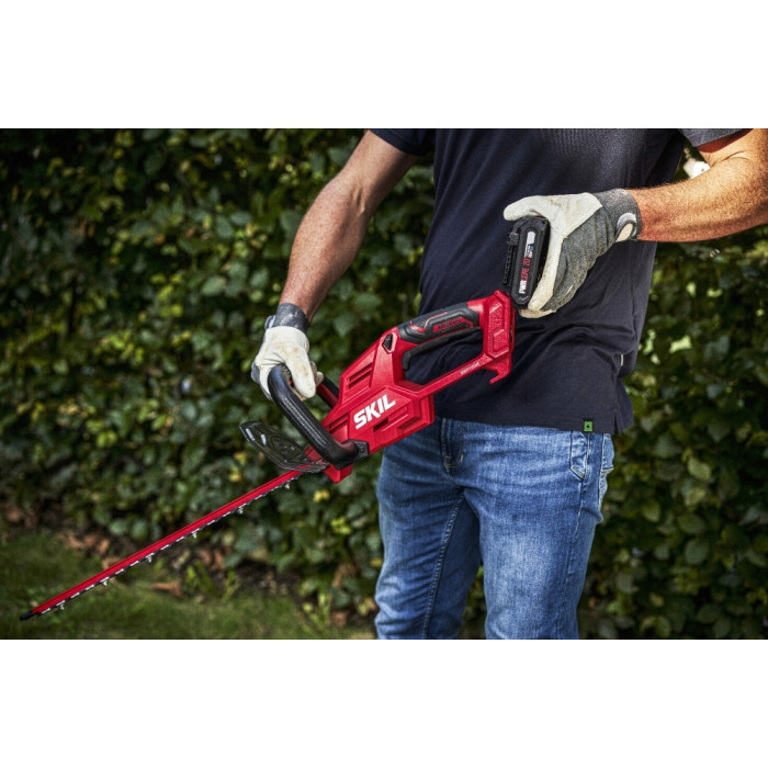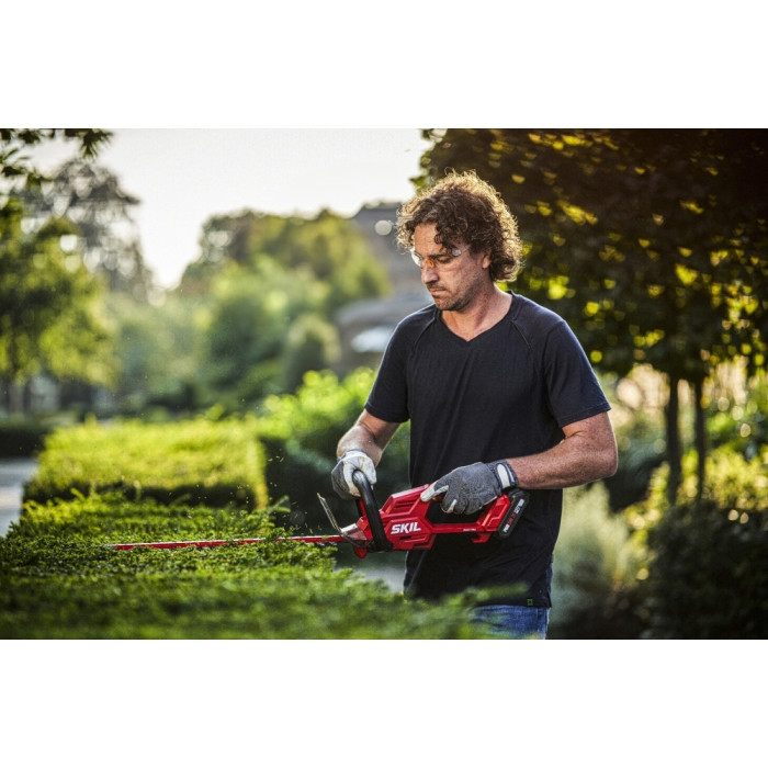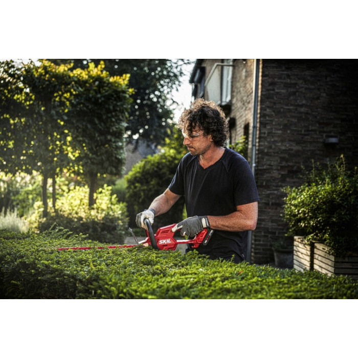 «20V Max» (18 В) SKIL 0438 – це акумуляторний кущоріз, призначений для підстригання живоплотів і кущів. Він входить в асортимент безщіткових інструментів SKIL, що пропонує неперевершене співвідношення ціни та якості. Наш безщітковий двигун швидший, потужніший і працює в 10 разів довше, ніж звичайний щітковий двигун.