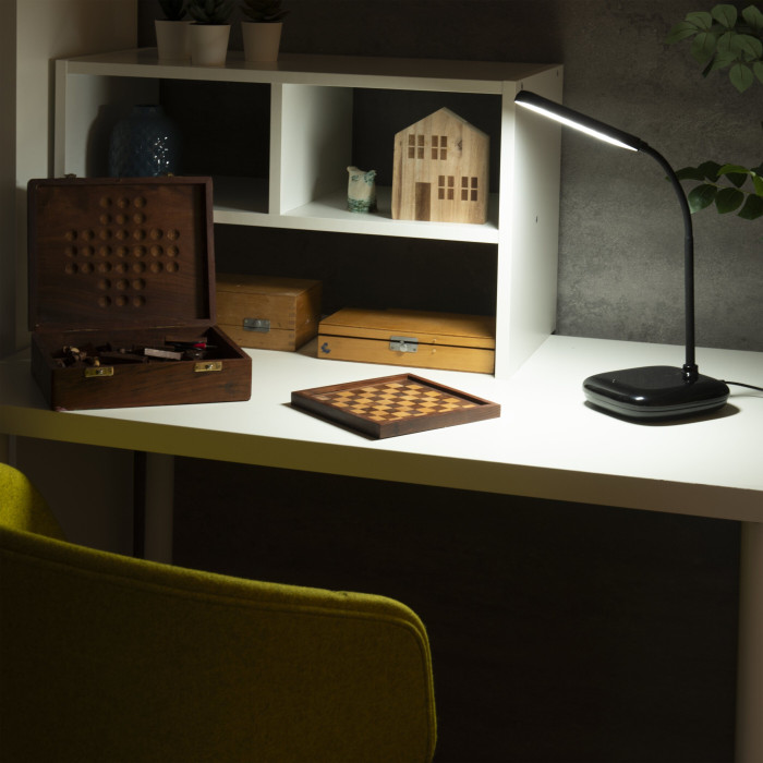 Настільна лампа OSRAM Panan DISK SQ 12 Вт — світлодіодний прилад з трирежимною зміною колірної температури 3000/4000/6500 К та функцією димування. Формує світловий потік 560–600 лм, має сучасний дизайн, гнучке регулювання нахилу освітлювальної панелі та комплектується зовнішнім блоком живлення.