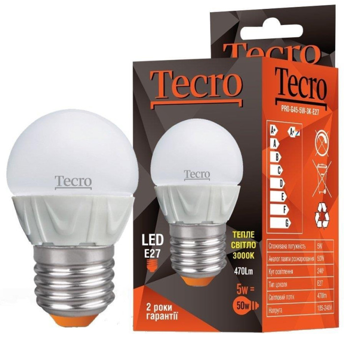 Лампа світлодіодна Tecro 5W E27 3000K (PRO-G45-5W-3K-E27)