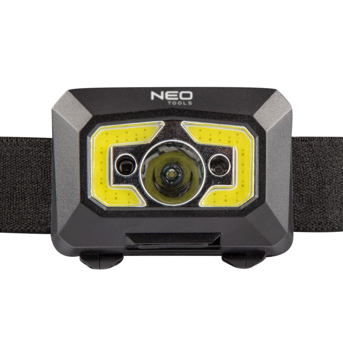Ліхтар налобний акумуляторний Neo Tools, 1200мА·год, 250лм, 3Вт, 5 функцій освітлення, червоне світло, датчик руху, індикатор заряду