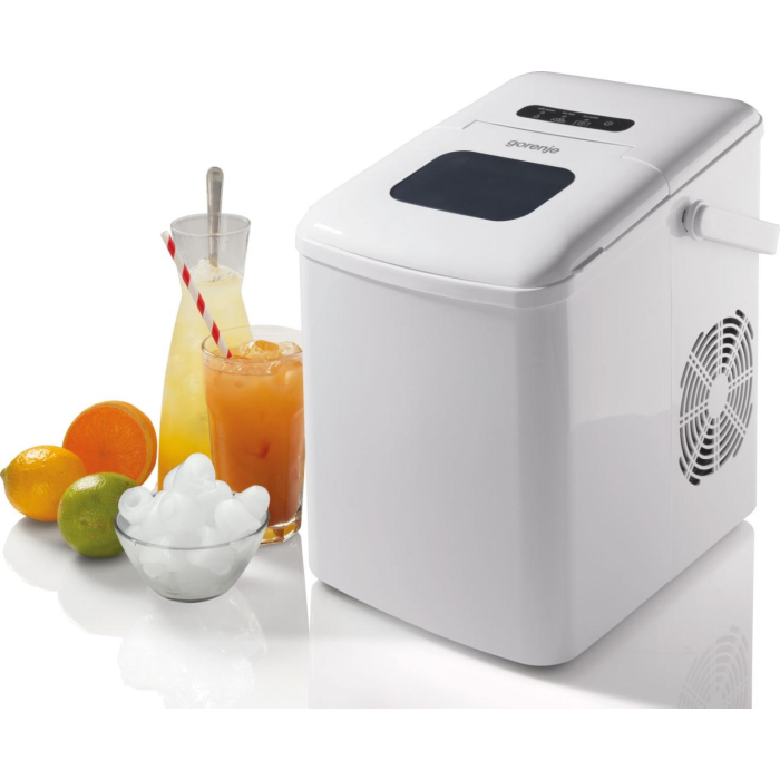 Gorenje IMD1200W — компактний домашній льодогенератор білого кольору, що виготовляє до 12 кг льоду на добу. Обладнаний 1,8-літровим резервуаром та LED-дисплеєм з електронним управлінням.