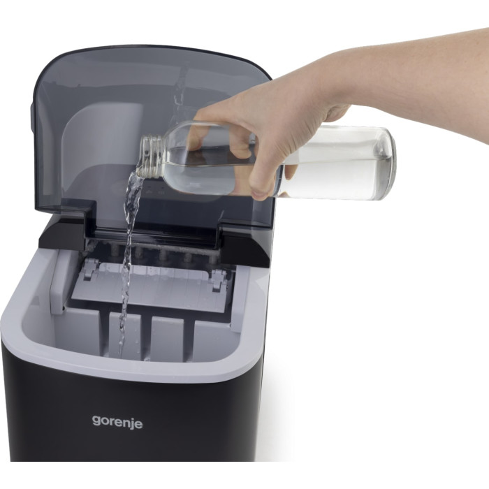 Для того, щоб мати готові кубики льоду про запас, достатньо наповнити резервуар водою до вказаної відмітки та обрати бажаний розмір кубиків. Прилад автоматично розпочне готувати кубики льоду кулевидної форми. Льодогенератор Gorenje не важкий, його легко переміщати та переносити. Підходить для використання вдома, у офісних приміщеннях, невеличких сімейних кафе, міні-готелях.