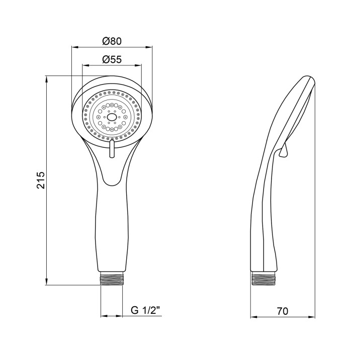 Лійка для душу Kroner KRM - C713 дозволяє розсікати єдиний потік води на сотні дрібних струмочків, роблячи гігієнічні процедури зручнішими, приємнішими та розслаблюючими. Завдяки стильному дизайну, ергономічній формі ручна лійка впишеться у будь-який інтер'єр. Діаметр ручного душу становить 80 мм та обладненний трьома режимами струменя. Перемикання режимів здійснюється обертанням диска. Матеріал лійки гіпоалергенний ABS пластик, з хромованим покриттям. Універсальне підключення шланга 1/2".