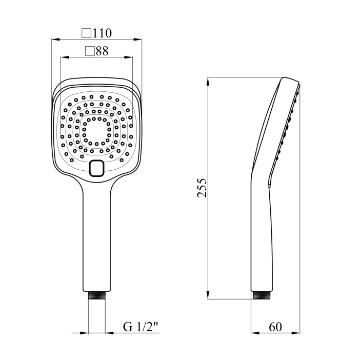 ABS-пластик з двошаровим нікель-хромовим покриттям, підключення 1/2", форма квадратна.