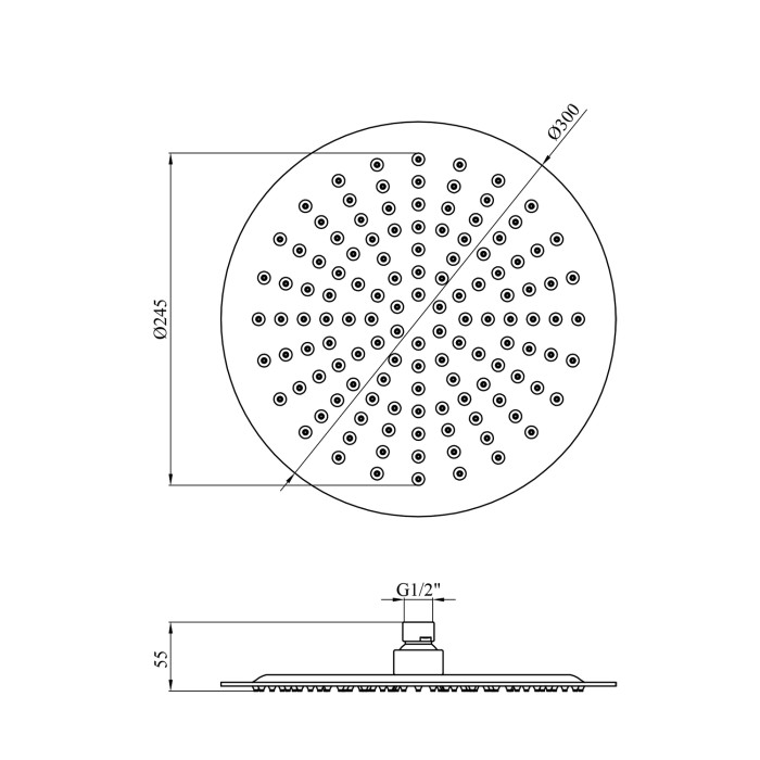 Лійка для верхнього душу Kroner KRP Edelstahl Klassisch - ESG703-30 виготовлена з нержавіючої сталі. Має один режим подачі струменя води. Легка в монтажі, монтується за допомогою різьблення 1/2". Має привабливий матовий ... Читати далі...