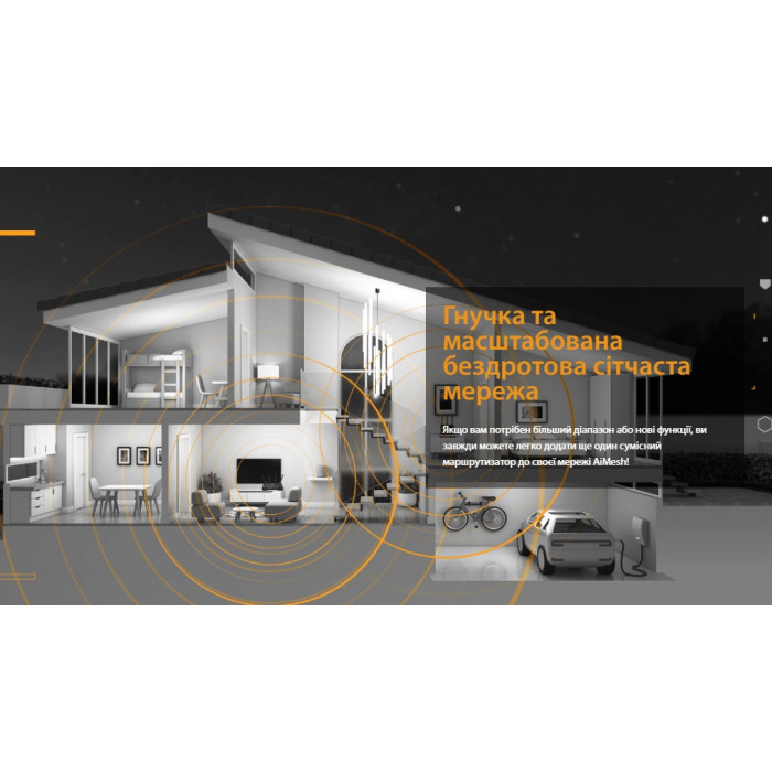 2x2 MIMO, Мобільний додаток, QoS, З підтримкою технології AiMesh, Кнопка RESET, Кнопка WPS, Wi-Fi 6, Game Boost / Acceleration, Power Button