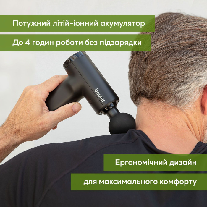 Масажер Beurer для тіла, літій- іонний акум., вага - 0,49кг, 3 насадки, чорний