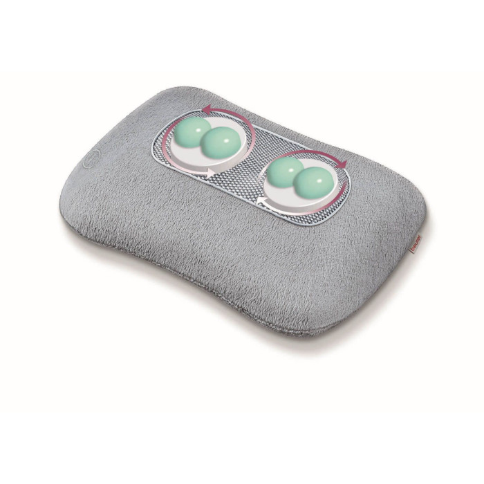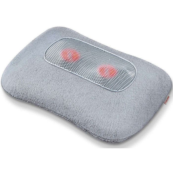 Масажна подушка Beurer для плечей, шиї, спини та ніг, від мережі, 4 головки шиацу, підігрів, сірий