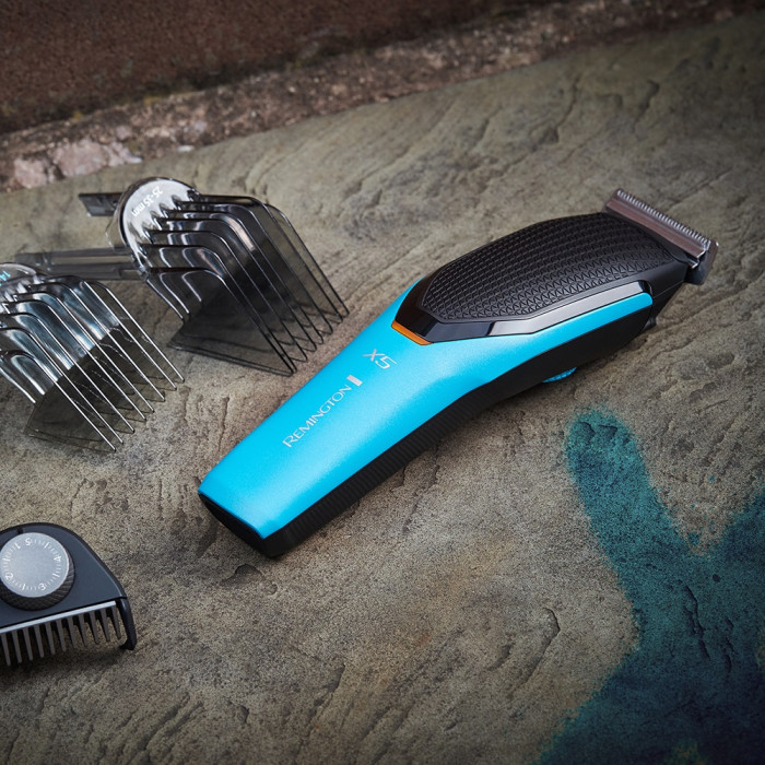 Машинка для стрижки Remington Power X Series X5, мережа+акум., роторний мотор, насадок-4, сталь, чорно-бірюзовий