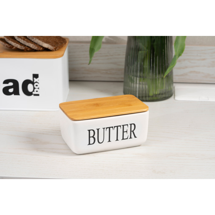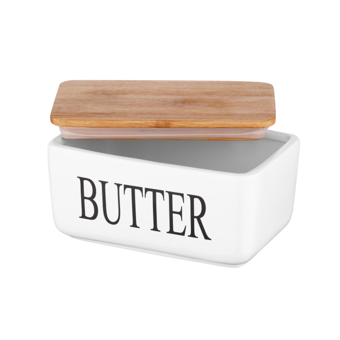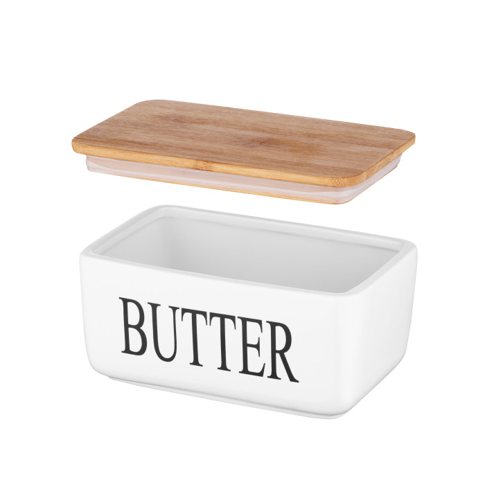 Масельничка ARDESTO Midori прямокутної форми є стильним і практичним посудом для зберігання. Виготовлена з безпечного харчового матеріалу – кераміки, і доповнена трендовою кришкою з бамбуку. Виріб можна мити в посудомийній машині, окрім кришечки.
