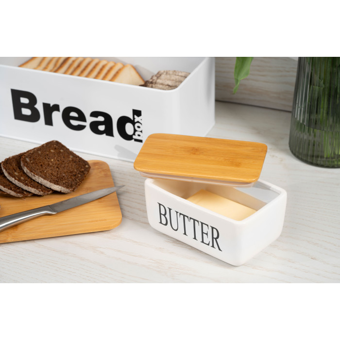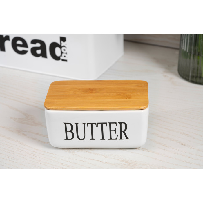 Маслянка ARDESTO Midori 16.5х10х8см, кераміка, бамбук, біла