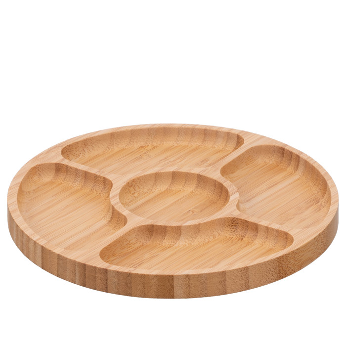 Менажниця ARDESTO серії Midori є стильним посудом, який стане в пригоді для сервірування столу на вечірках і пікніках. У цілісному виробі круглої форми вміщується 5 страв, які не змішуватимуться між собою, завдяки 4 перегородкам. Менажницю виготовлено з екологічно чистого матеріалу – бамбуку, який не вбирає вологи. Розмір виробу становить 20 × 1,6 см. Менажницю не рекомендовано мити в посудомийній машині. Опаковання містить термозбіжну плівку + кольоровий рукав. Менажниця може стати небанальним подарунком до різноманітних свят.