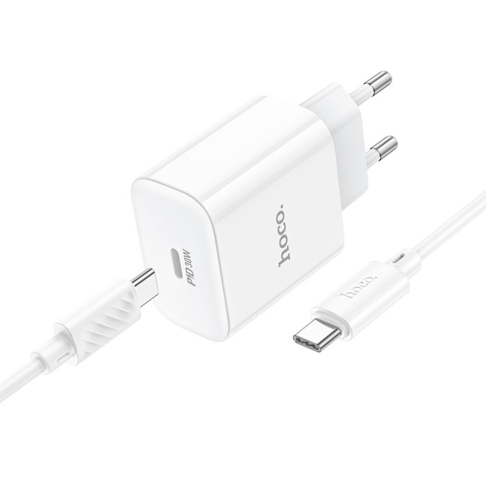 Мережевий зарядний пристрій HOCO C76A Pro Majestic single port PD30W charger set (Type-C to Type-C)(EU) White