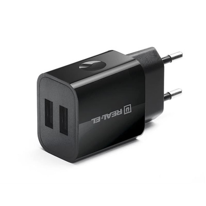 Мережевий зарядний пристрій REAL-EL CH-210 (2USB, 2.1A) Black
