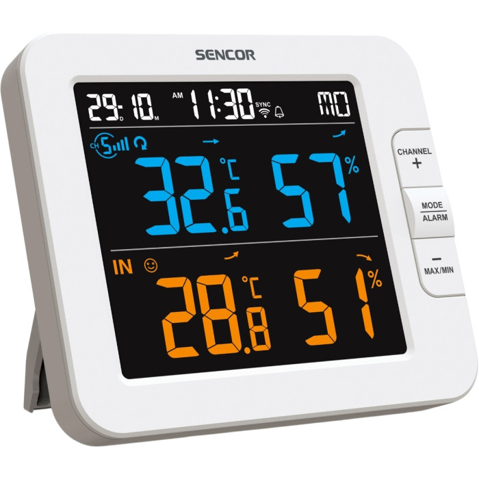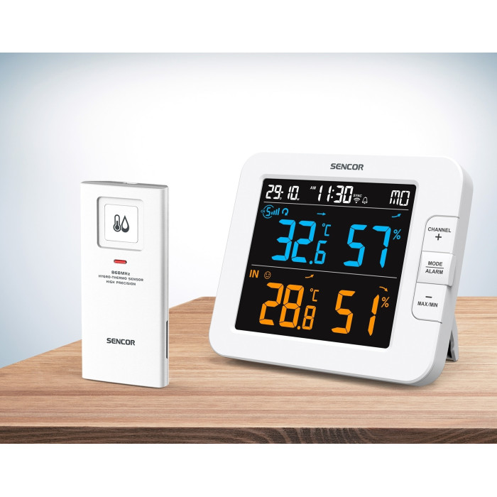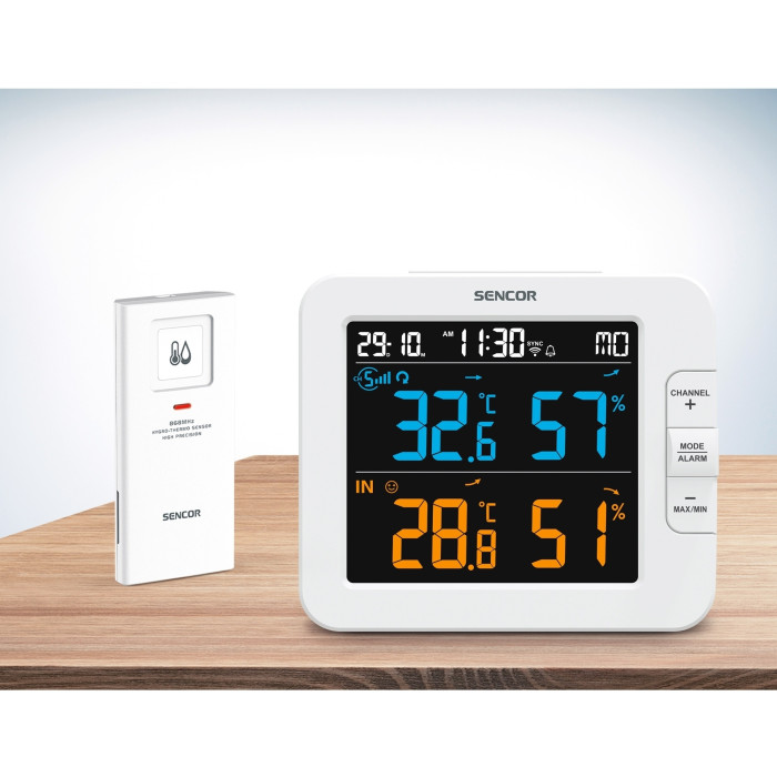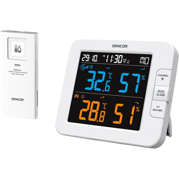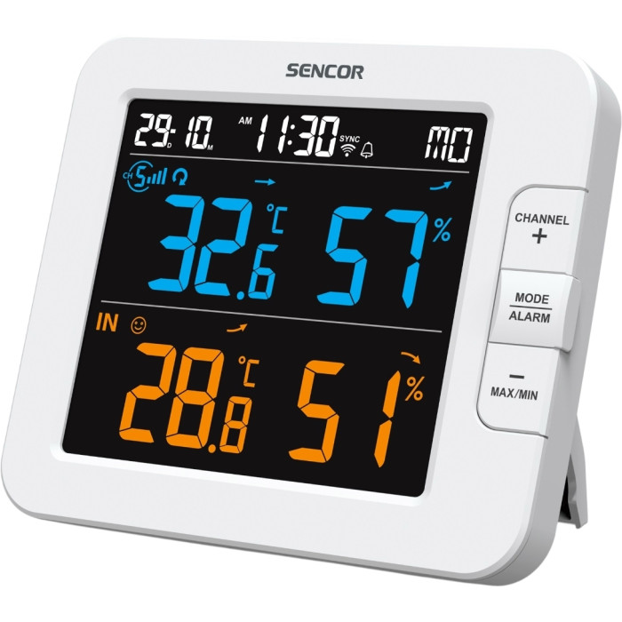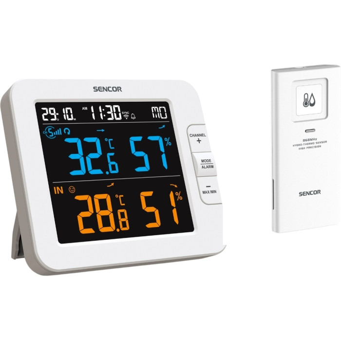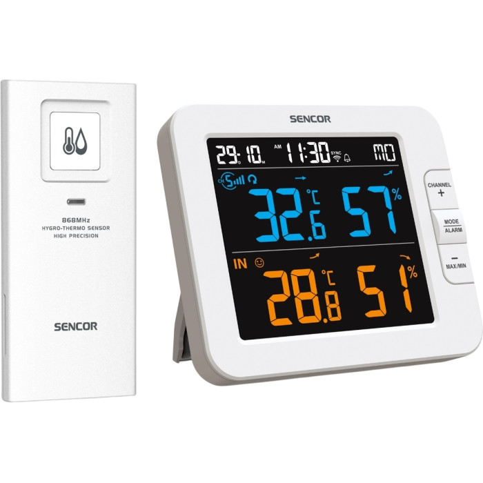 Метеостанція Sencor, внутр/зовн вимірювання, температура, вологість, час, дні тижня, календар, підтримує платформи Android та iOS, Білий
